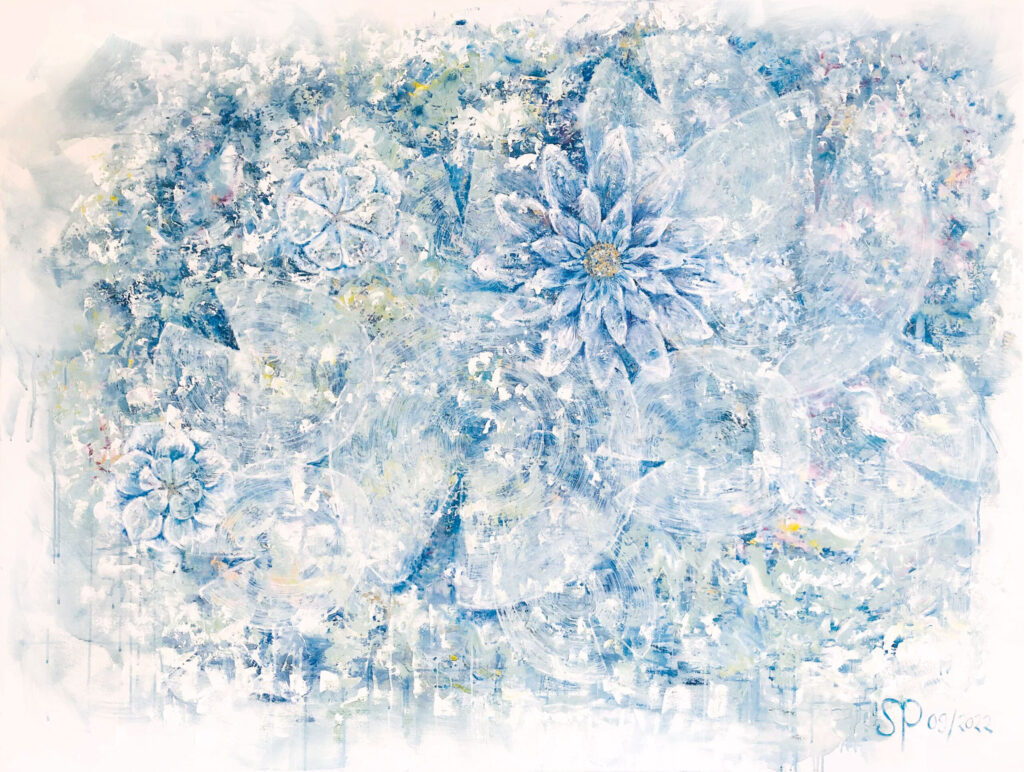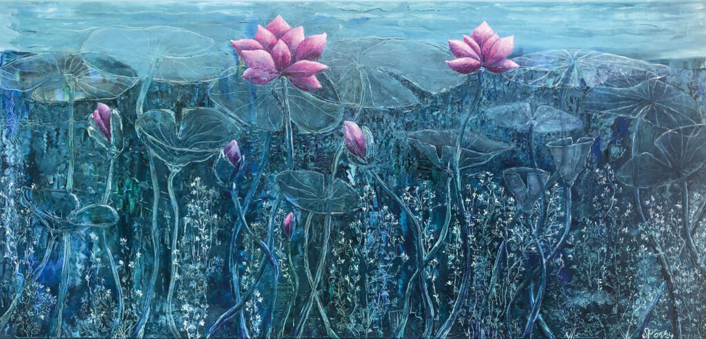 SEEROSEN VON OBEN 160 x 120 cm – Aqua Öl auf Leinwand – 2022